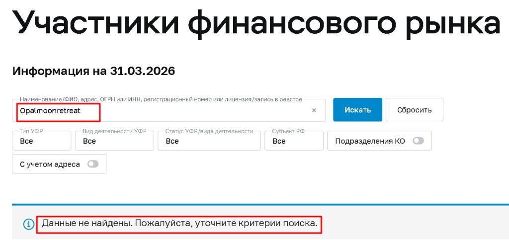 Ключевое отличие: Opalmoonretreat — это не просто очередной скам, а проект, который паразитирует на имени реально существующего легального бизнеса. Это делает его особенно опасным, потому что люди могут найти информацию о настоящем йога-ретрите и ошибочно поверить, что «инвестиционная платформа» имеет к нему отношение.