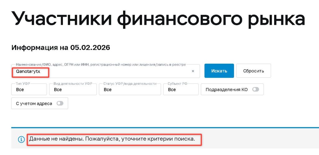 | Лицензии и регулирование | Компания может ссылаться на международные регуляторы (FCA, CySEC и т.д.) или «инновационное» небанковское регулирование. | Отсутствие проверяемых лицензий. Подобные проекты никогда не имеют записи в реестрах реальных регуляторов (ЦБ РФ, FCA). Заявления о лицензиях — ложь . |