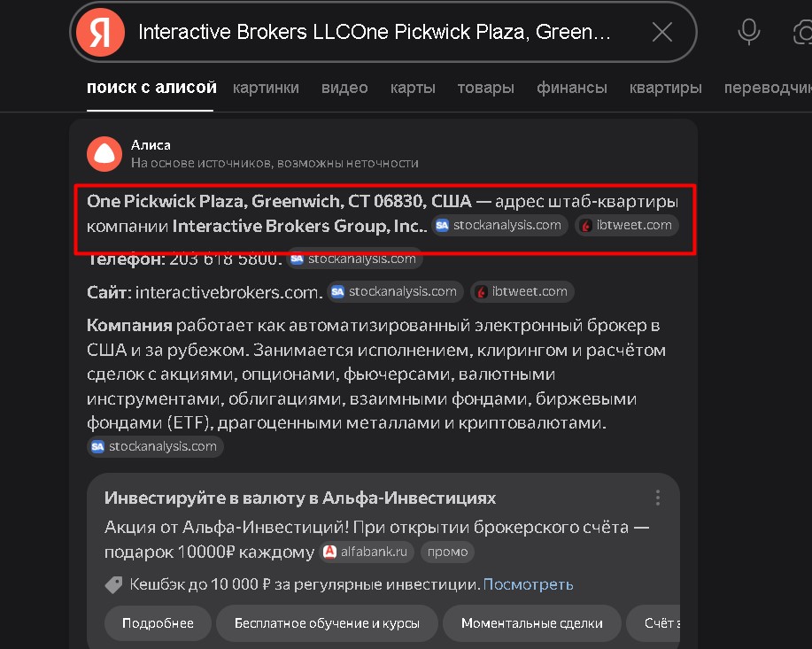 | Фальшивая американская прописка | Указанный адрес «One Pickwick Plaza, Greenwich, CT 06830» — это реальный офисный центр в Коннектикуте. Однако принадлежит он совсем другой компании. |
