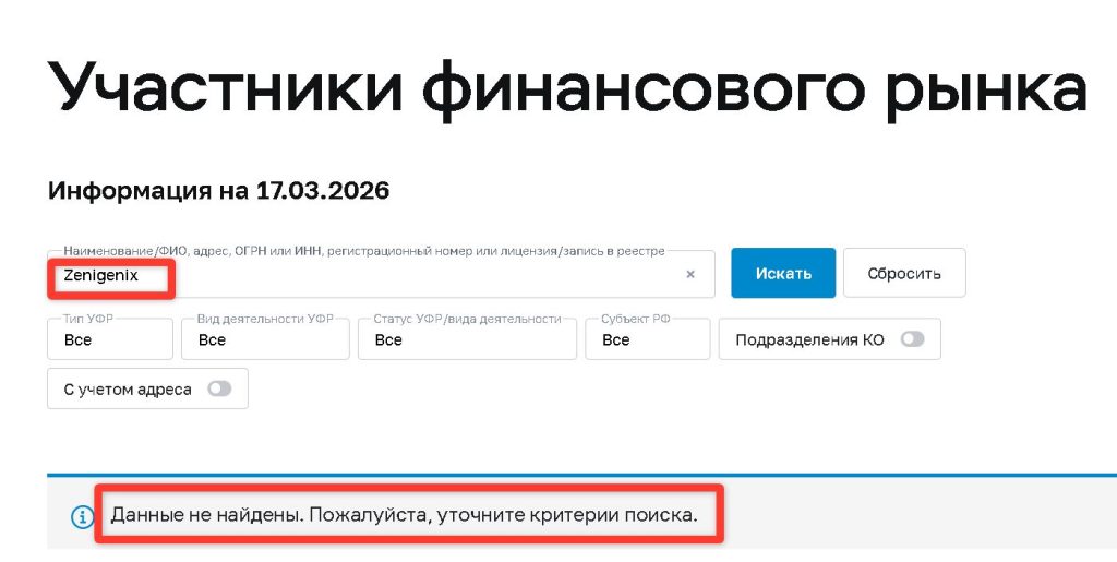 На сайте Zenigenix могут быть красивые картинки с упоминанием неких «лицензий» и «регуляторов». Однако реальность такова :